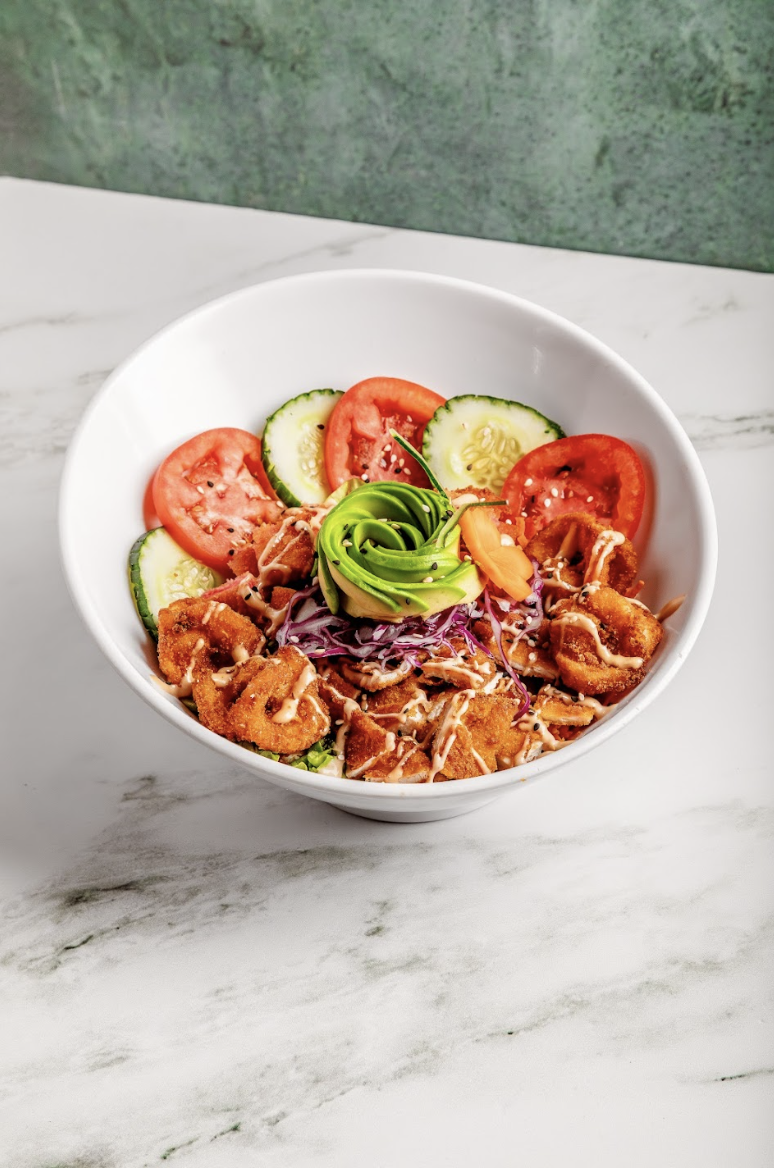Fideo de arroz, cebollín, aguacate, arroz, tofu, ajonjolí y pepino. 500ml.